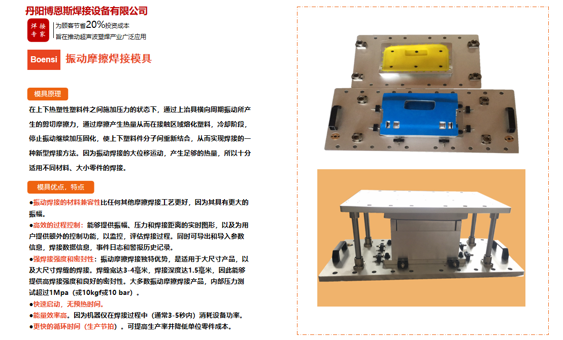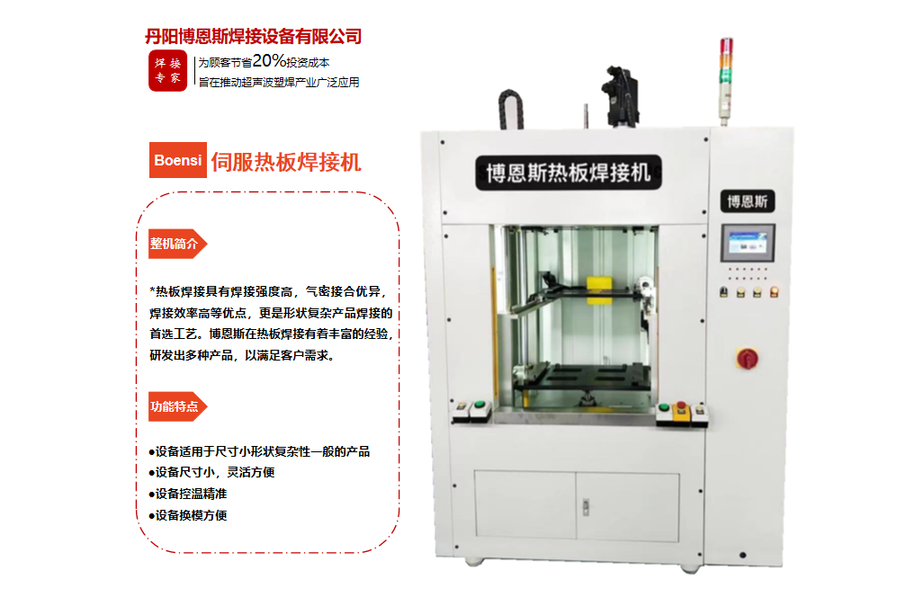 丹陽博恩斯焊接設(shè)備有限公司是塑料焊接領(lǐng)域集研發(fā)設(shè)計、生產(chǎn)制造、銷售服務(wù)為一體的企業(yè)。公司自成立以來堅持“以人為本”的理念,組織了一支強大的技術(shù)研發(fā)團隊,攜多年來積累的豐富經(jīng)驗,并結(jié)合國際先進塑料焊接技術(shù),根據(jù)市場需要,不斷開發(fā)具有核心競爭力的新產(chǎn)品。公司具有很強的非標(biāo)機械研發(fā)、設(shè)計、生產(chǎn)能力,可為廣大客戶定制各類專用機械設(shè)備。公司設(shè)計生產(chǎn)的塑料焊接設(shè)備已廣泛應(yīng)用于汽車、電子、家電、醫(yī)療器械、無紡布...